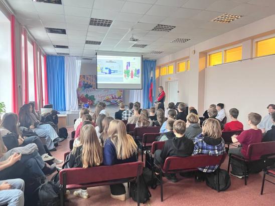 Перед школьниками выступил директор по управлению и планированию завода Алексей Захаров. Он рассказал учащимся о принципах стратегического планирования, управлении крупными промышленными проектами и карьерных возможностях на современном машиностроительном предприятии.
